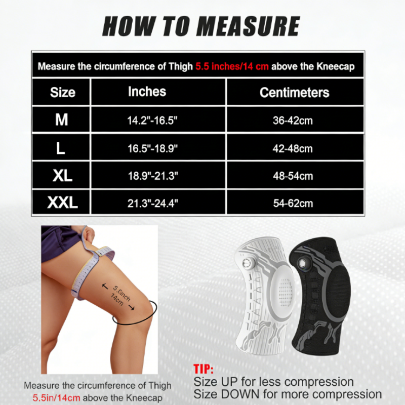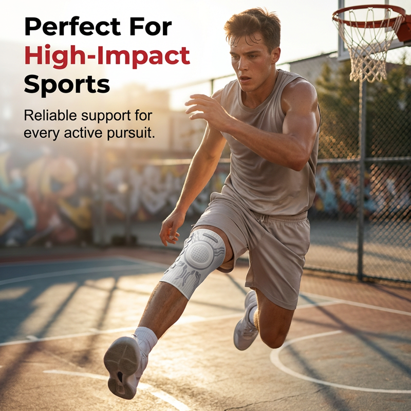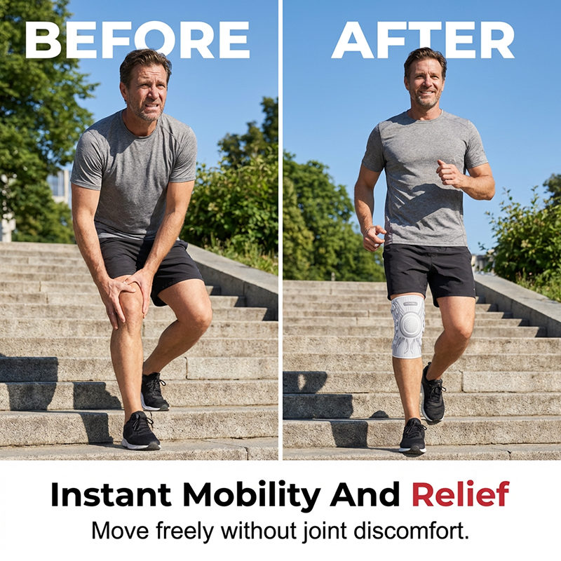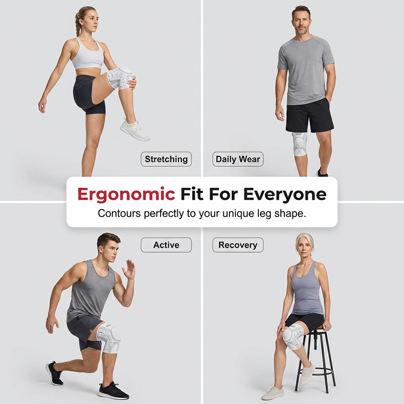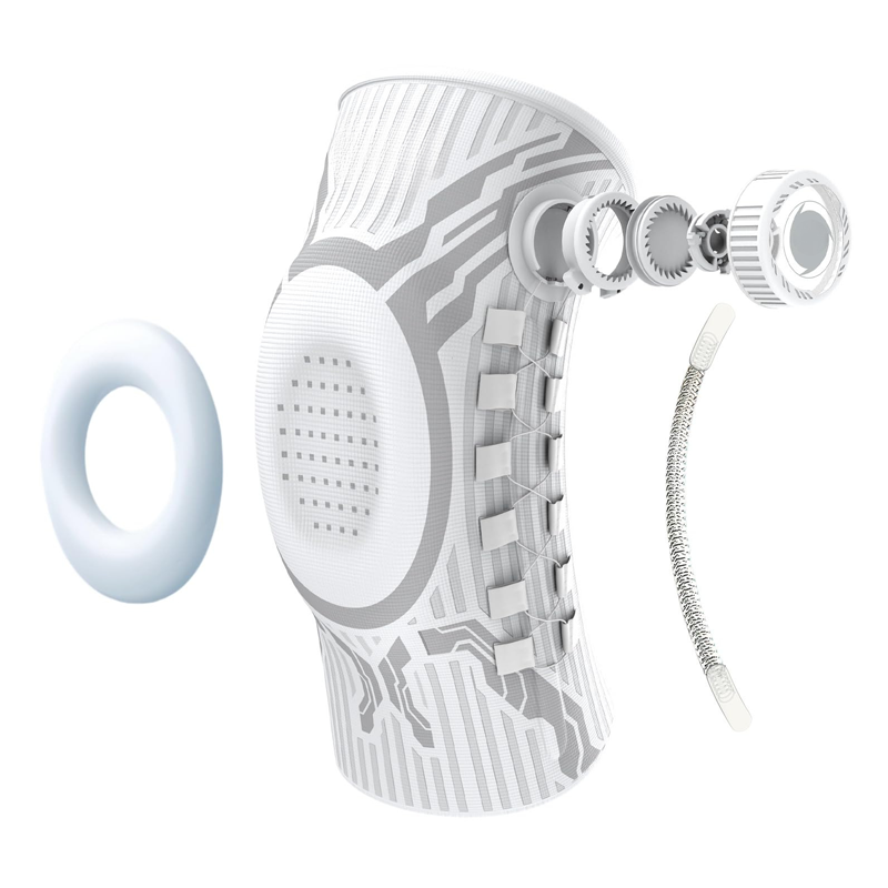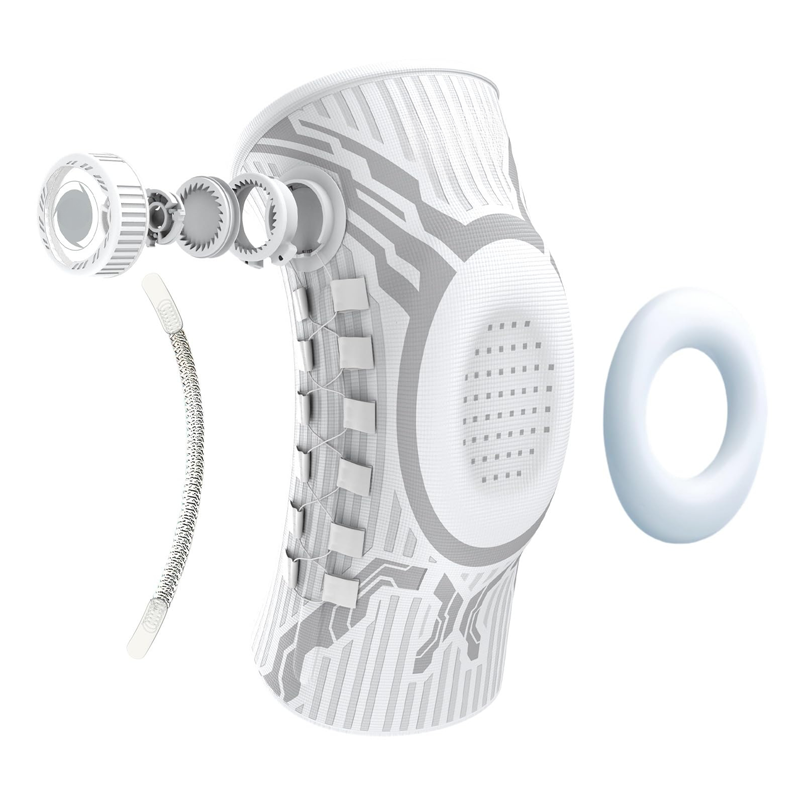 A térdkalácsot körülvevő beépített ütéscsillapító gélgyűrű elnyeli az ütéseket és csökkenti az ízületre nehezedő nyomást. Ez a kialakítás segít enyhíteni a fájdalmat, és döntő fontosságú stabilitást biztosít az erős terheléssel járó mozgások során.