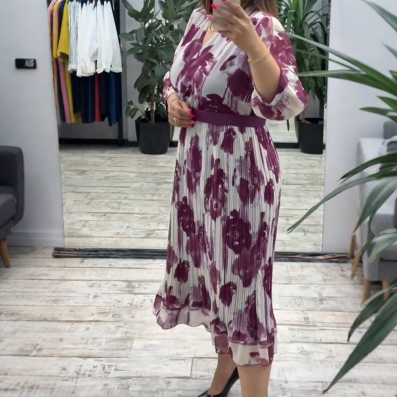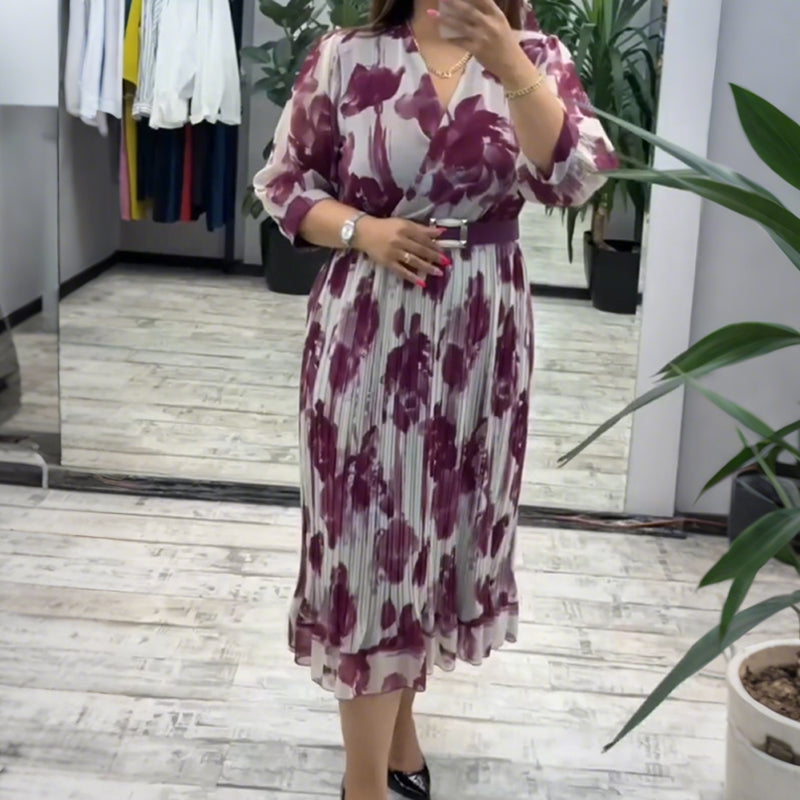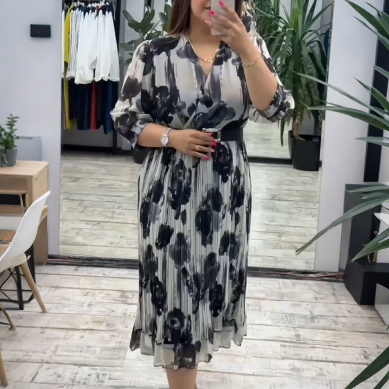 – Merész virágminták klasszikus, stílusos színpalettával, ez a ruha könnyedén emeli a megjelenésed eleganciáját és művészi vonzerejét. Tökéletes formális és hétköznapi alkalmakra.