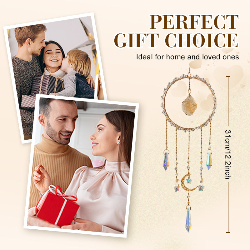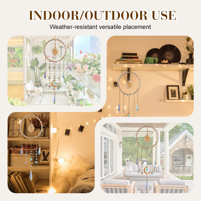 A csomag tartalma: 1 db szivárványos üveggyöngyös gyűrűs szélcsengő