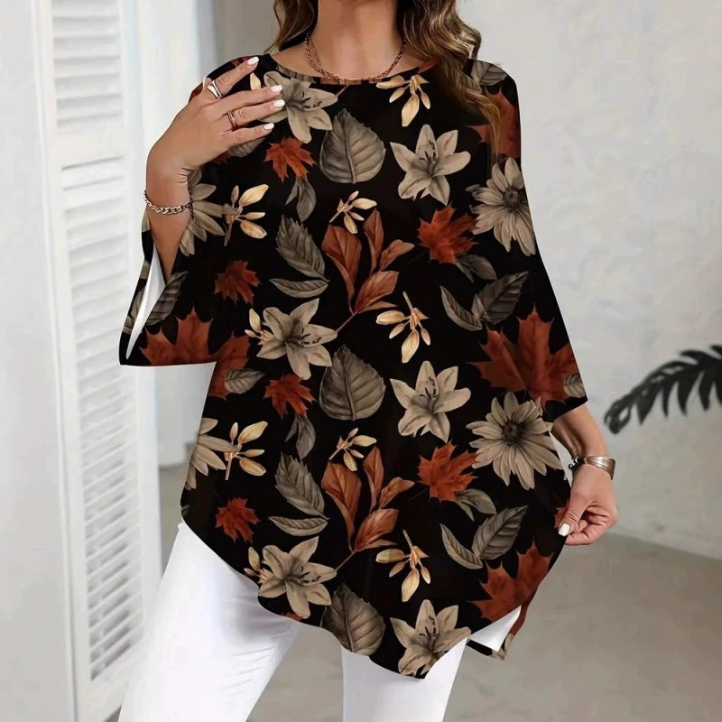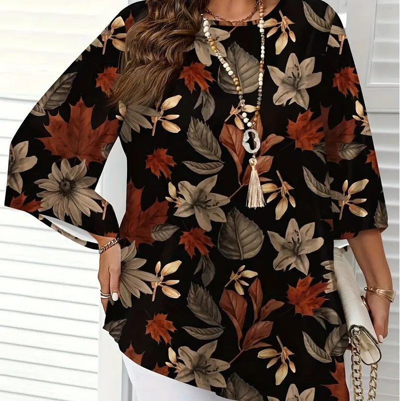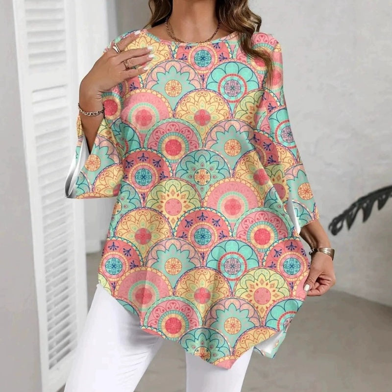 Csomag Tartalmaz: 1 * Női Laza Mintás Kerek Nyakú Póló
